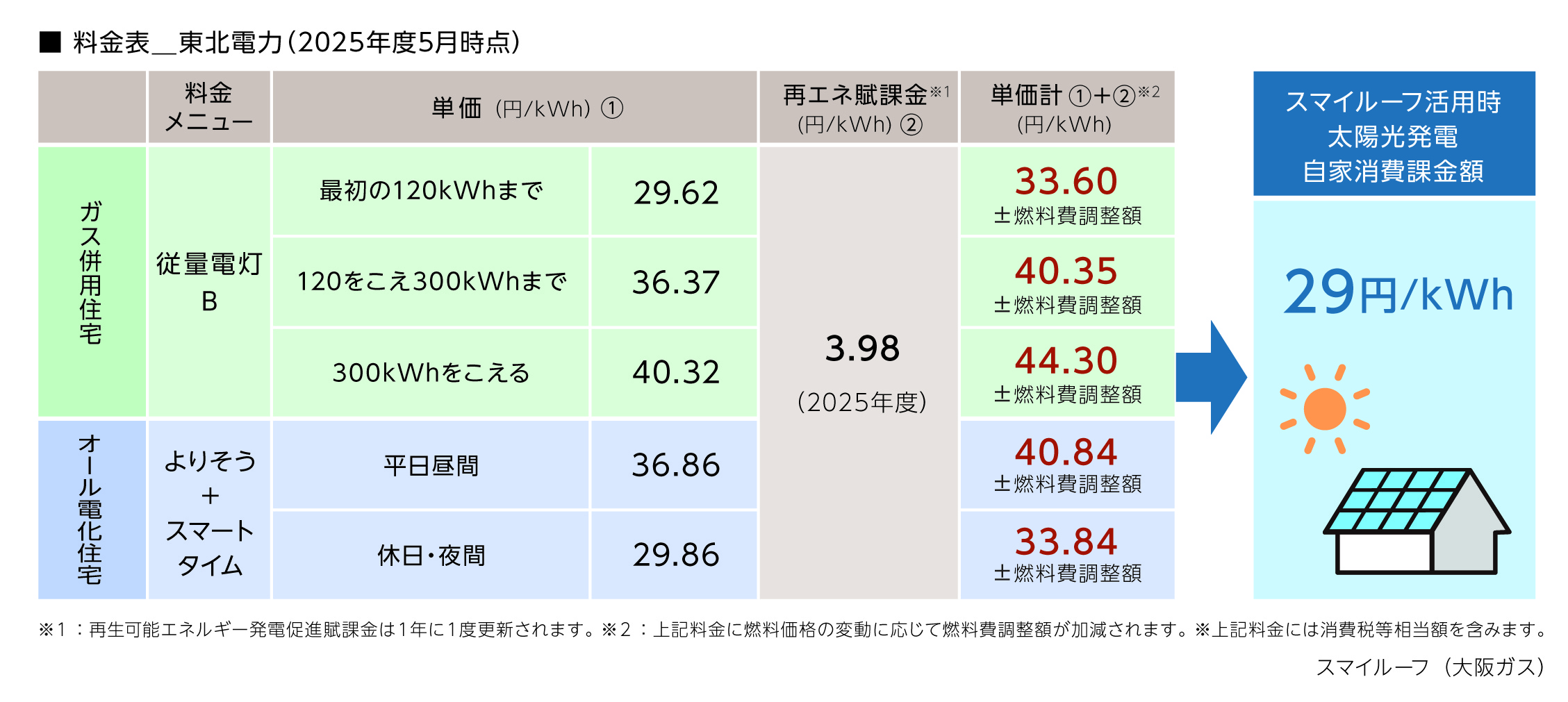 スマイルーフ御契約中は、太陽光発電分を燃料費調整費+再生可能エネルギー