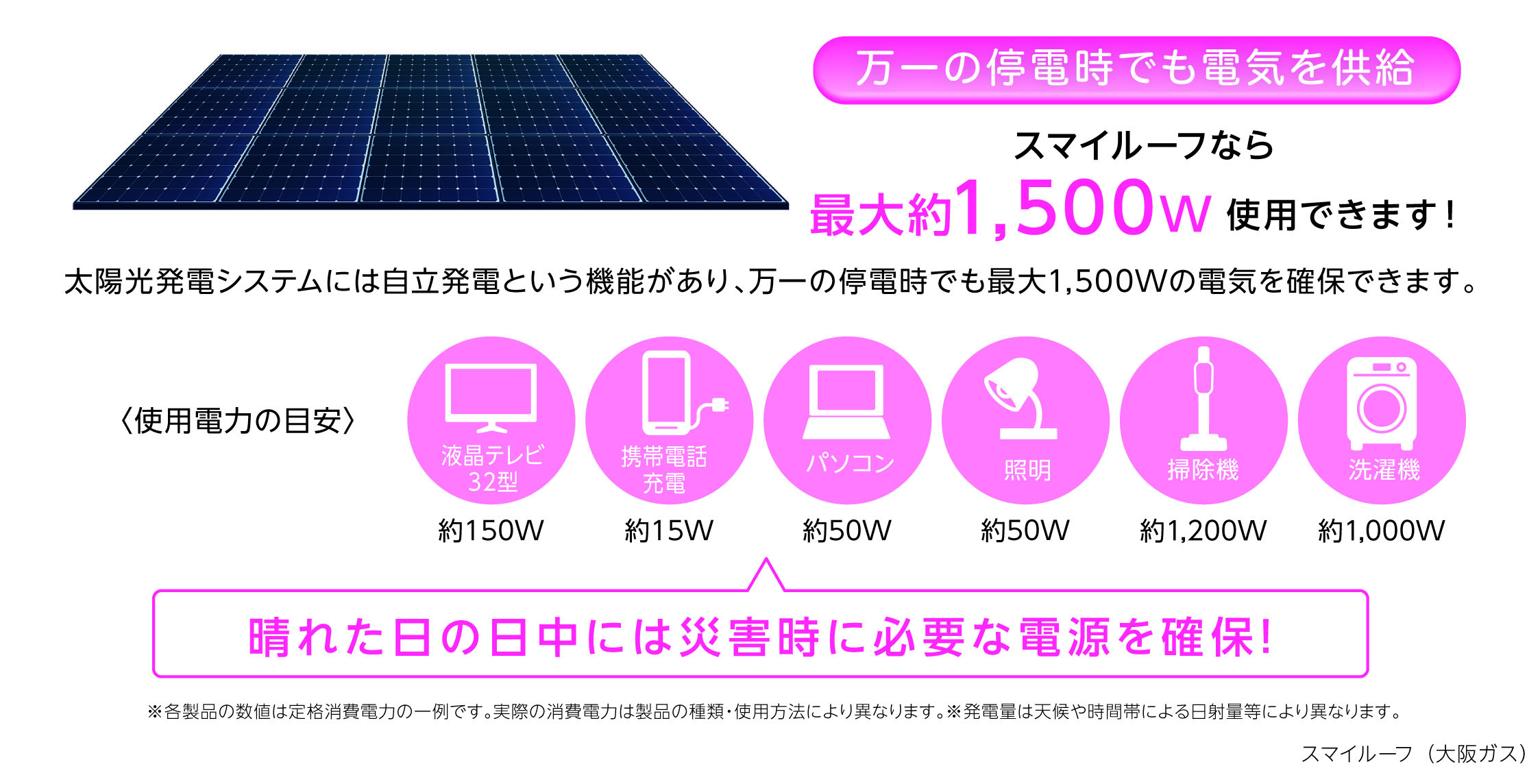晴れた日の日中であれば、テレビやパソコンの利用に必要な電力を