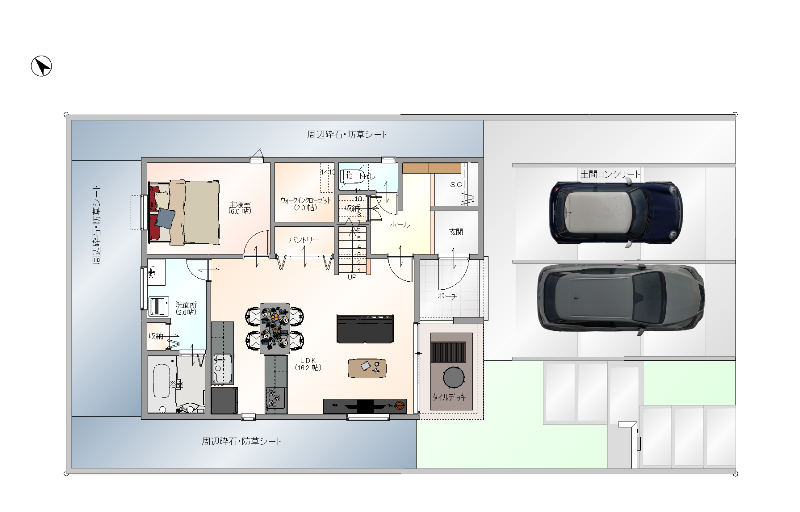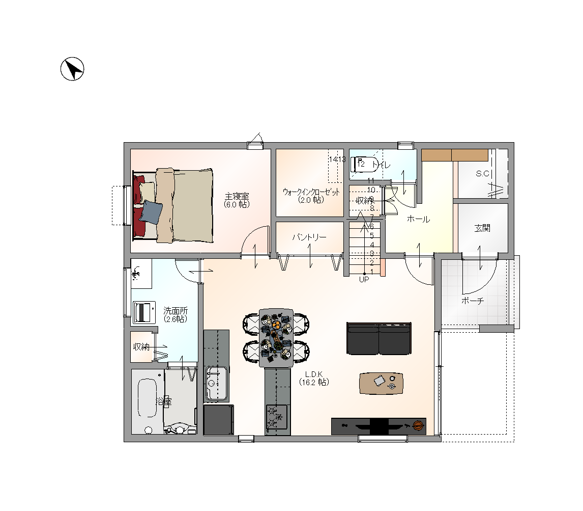 キッチンを中心とした空間で家事ラク&寝室にもスムーズです。